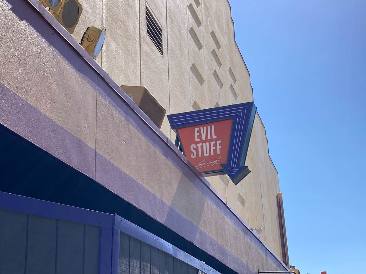 - The new sign simply reads “Evil Stuff…this way."