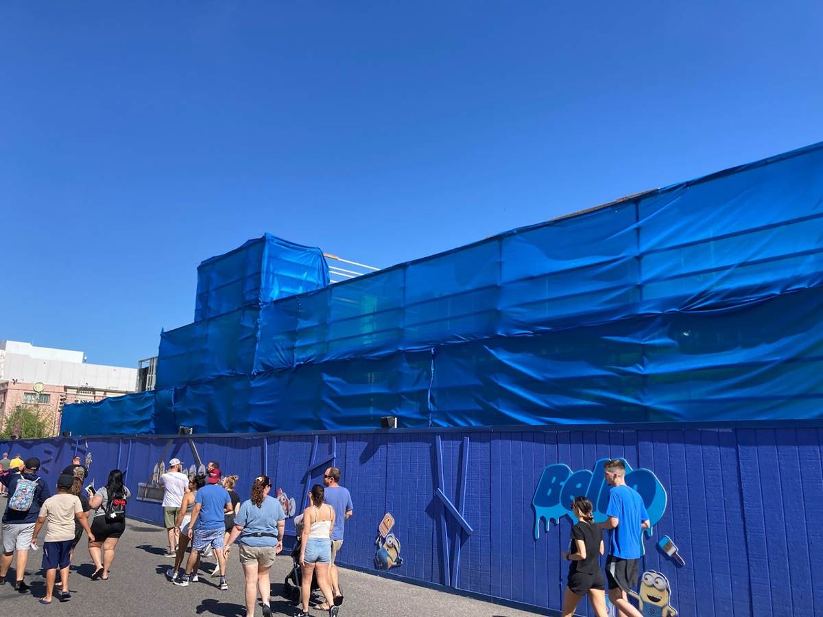 - Minion-themed construction walls still surround the building as we await the opening of the attraction this summer.
