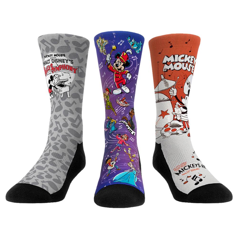 - Rock ‘Em’s signature black-soled socks get a fun update with Mickey Mouse celebrating music. The “leader of the band that’s made for you and me" shows off his conductor talents and melodious skills on three stylish patterns that every fan will want in their sock drawer.