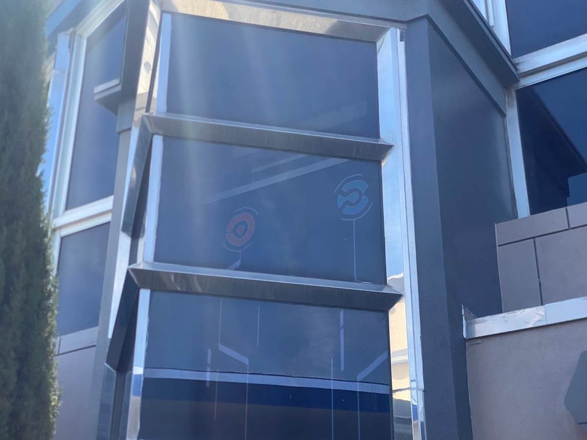 - While most of the windows remain blacked out, we could spot a few TRON-inspired designs through this large window.