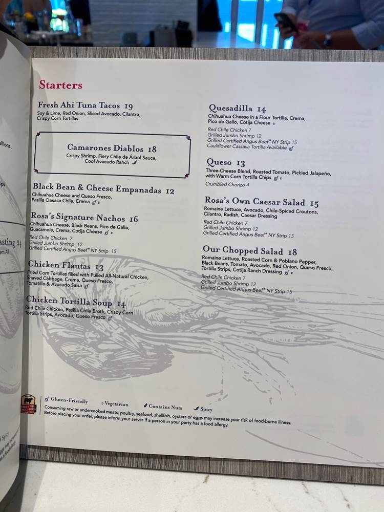 With Walt Disney World being a family destination, of course there is a multi-person platter available. Guests can enjoy Parrilladas in different sizes. Rosa’s Own Mexican-Style Mixed Grill, Served on a Sizzling Platter, accompanied with Freshly Made Corn Tortillas, Roasted Onions, Frijoles Borrachos, Cheese-Stuffed Jalapeño, Charred Tomato Salsa, Pico de Gallo, Guacamole, and come in various sizes for 2, 4, or 6, with the largest containing Red Chile Chicken, Grilled Chorizo Sausage, 10oz Certified Angus Beef NY Strip, Jumbo Shrimp with Cilantro Chimichurri, Grilled Cocoa Rubbed Short Ribs.