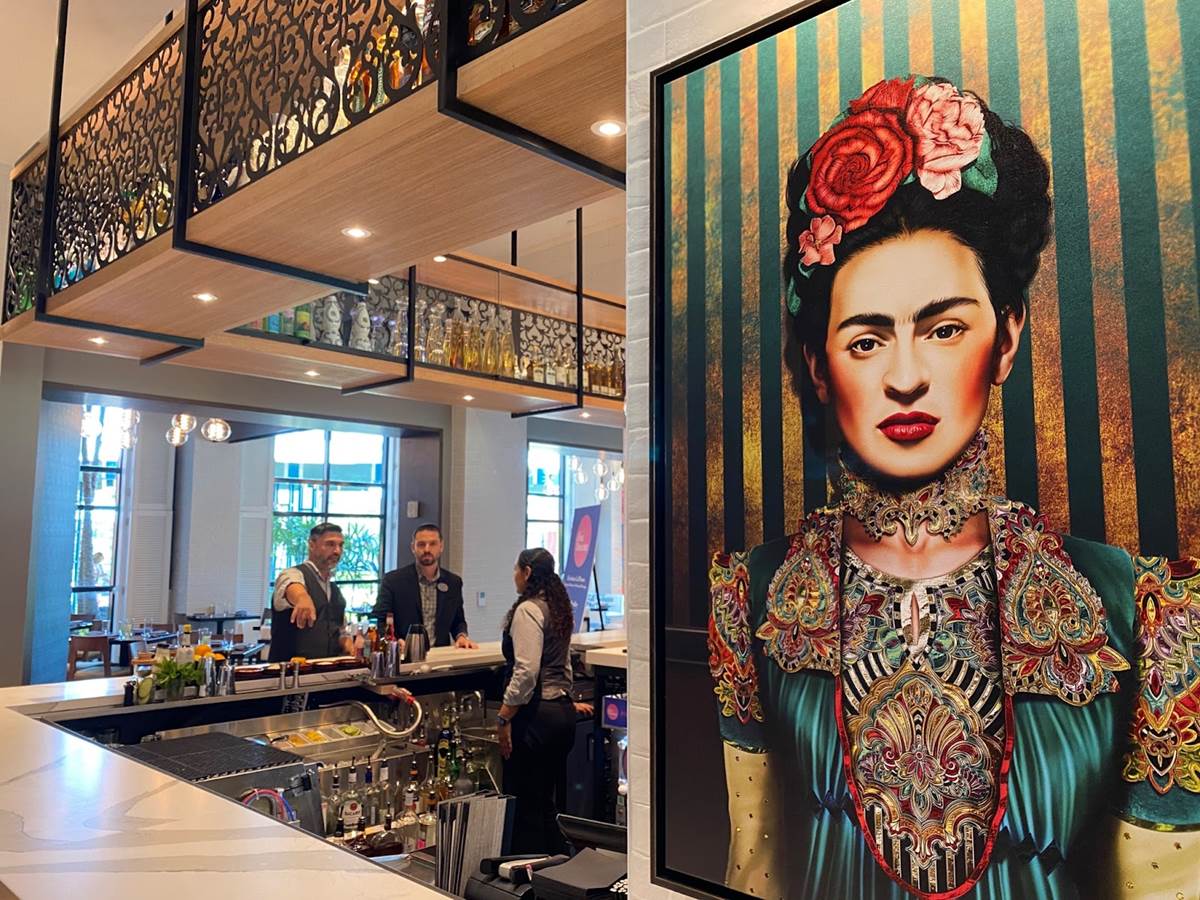 Guests will also enjoy captivating décor, with dramatic design elements familiar to fans of the brand, which transports guests on a unique culinary journey. The 5,500-square-foot restaurant seats up to about 189 guests, including a 40-person bar and a beautiful private dining room for 50. One notable design feature is a centerpiece painting of regarded Mexican artist Frieda Kahlo, noted for her self-portraits featuring bold, vibrant colors.