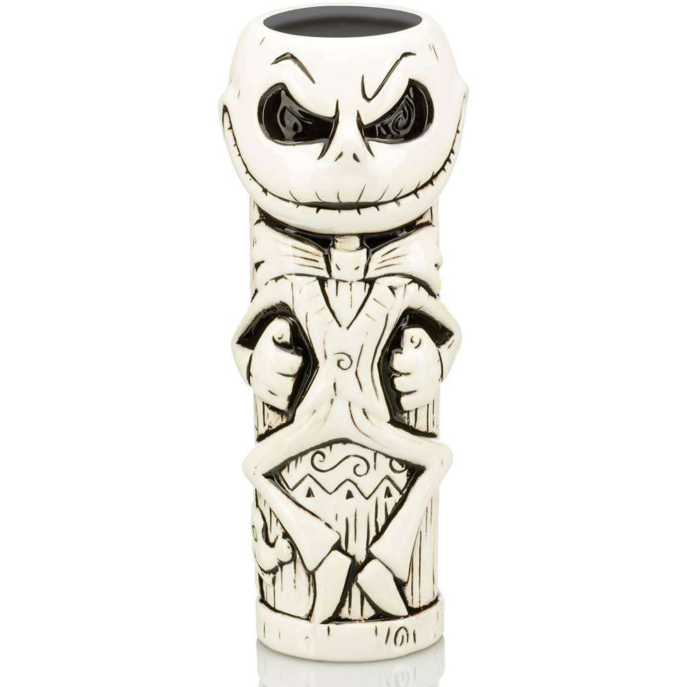 - The Jack Skellington Geeki Tikis mug measures 8.25 in tall x 3.5in wide. It features spooktacular black and white detailing and holds 16oz. The Sally Geeki Tikis® mug measures 8in tall x 3in wide and features an electrifying light blue glaze with a contrasting orange interior, and holds 12oz.