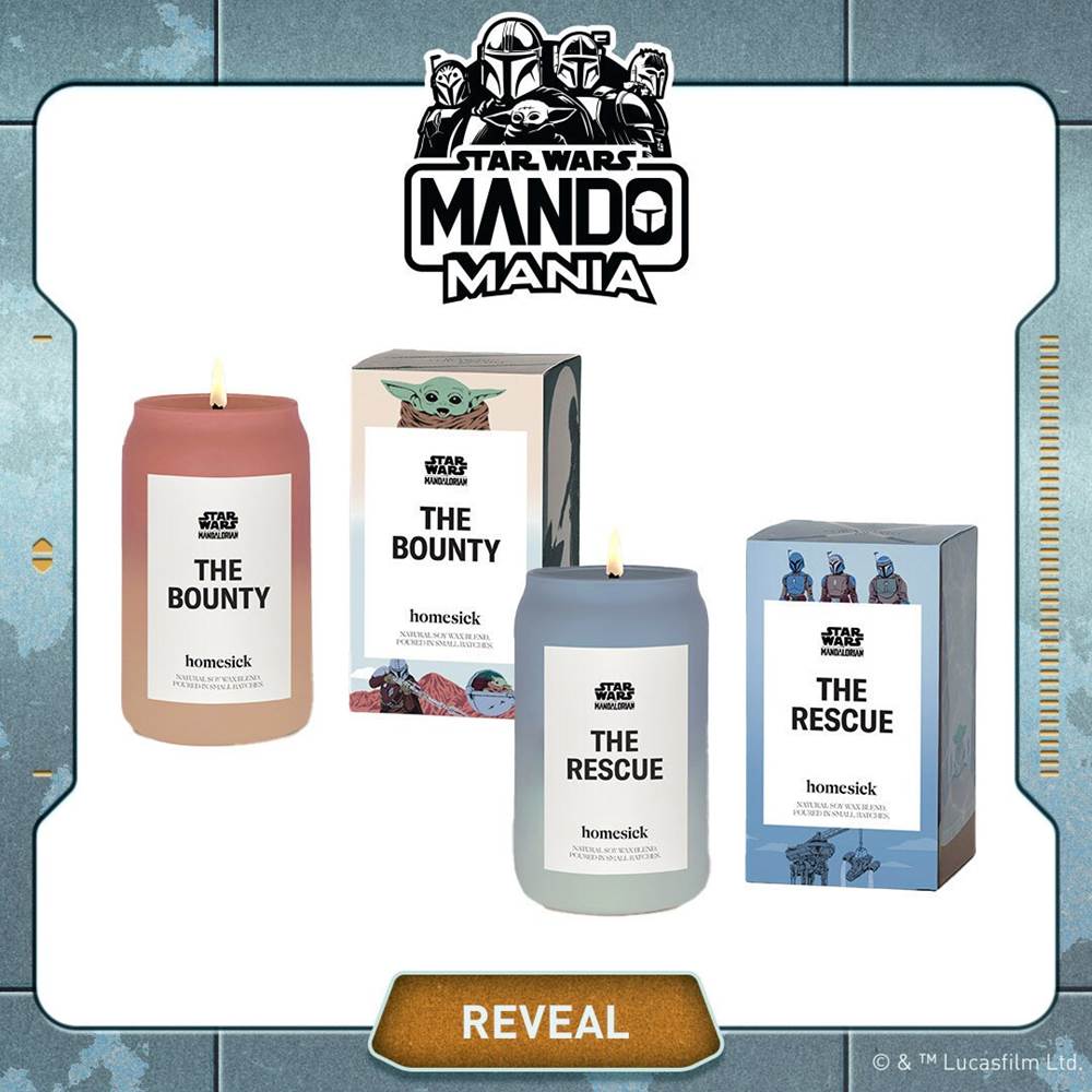 Enjoy scents inspired by episodes and the worlds of The Mandalorian, with original art featuring Mando and Grogu. Available for purchase starting May 4. Fans can sign up to be notified when the collection is available.
