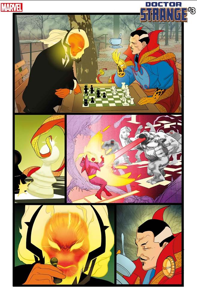Marvel has shared a first look at the upcoming “Doctor Strange #3" and it looks like the Sorcerer Supreme will take on the dread Dormammu… in a game of chess.