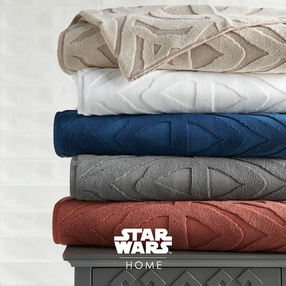 This beautiful towel design is inspired by Aurebesh, the Star Wars alphabet which was used in ancient Jedi texts. In both design and quality, this sculpted bath towel is unlike any in the galaxy. It has a luxurious loft and is super soft and absorbent.