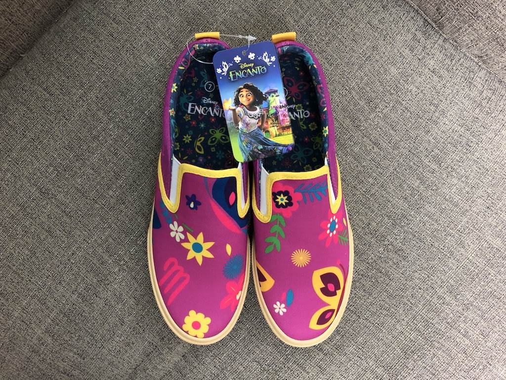 I’ve been writing about Disney merchandise for five years now which means I’ve seen thousands of products and pictures online as well as in stores and at Disney parks. I’ve even had the pleasure of getting to review and showcase items for Barely Necessities that celebrate some of my favorite characters. When our friends at Fun.com offered us a choice of products to check out, I heartily agreed and wound up with a delightful pair of slip-on shoes inspired by Encanto.