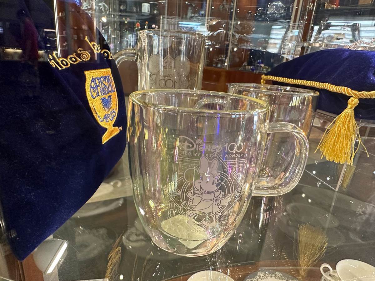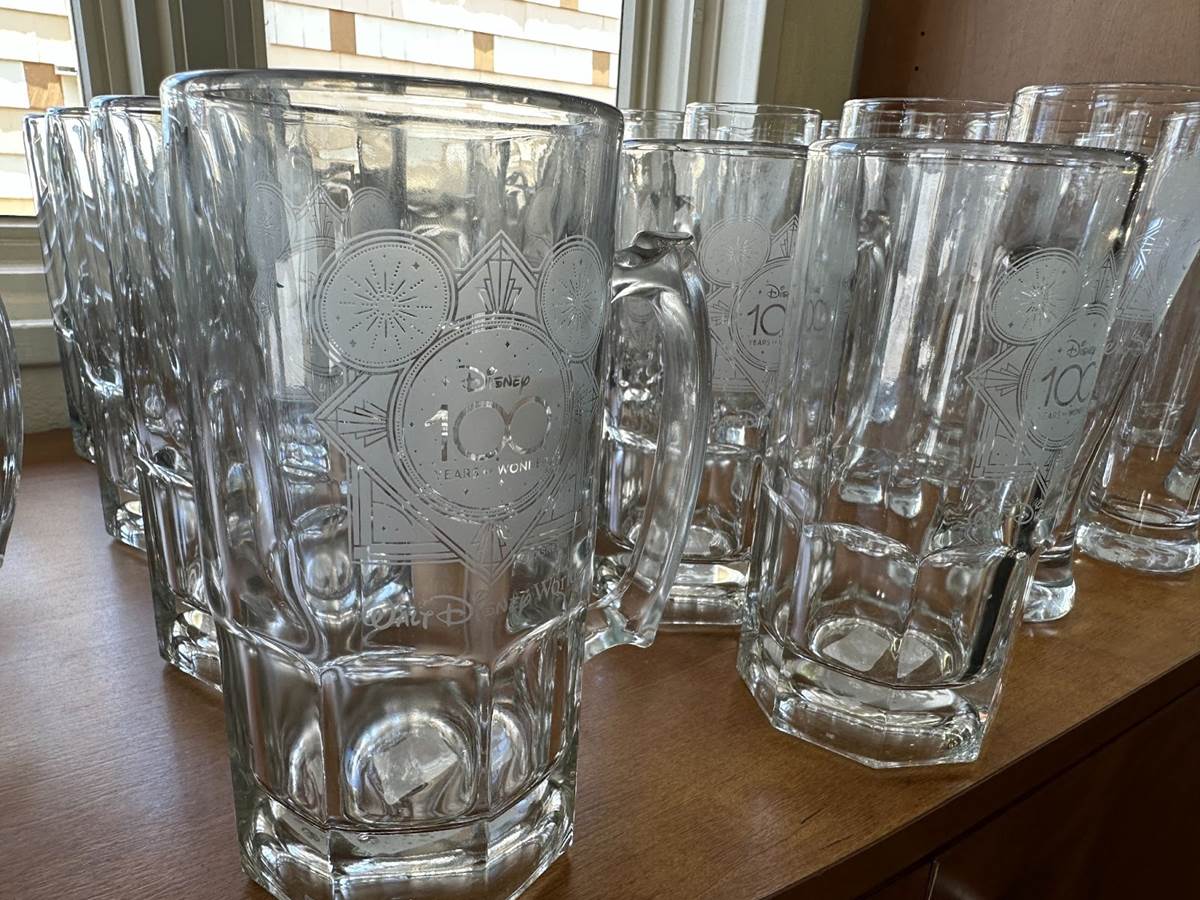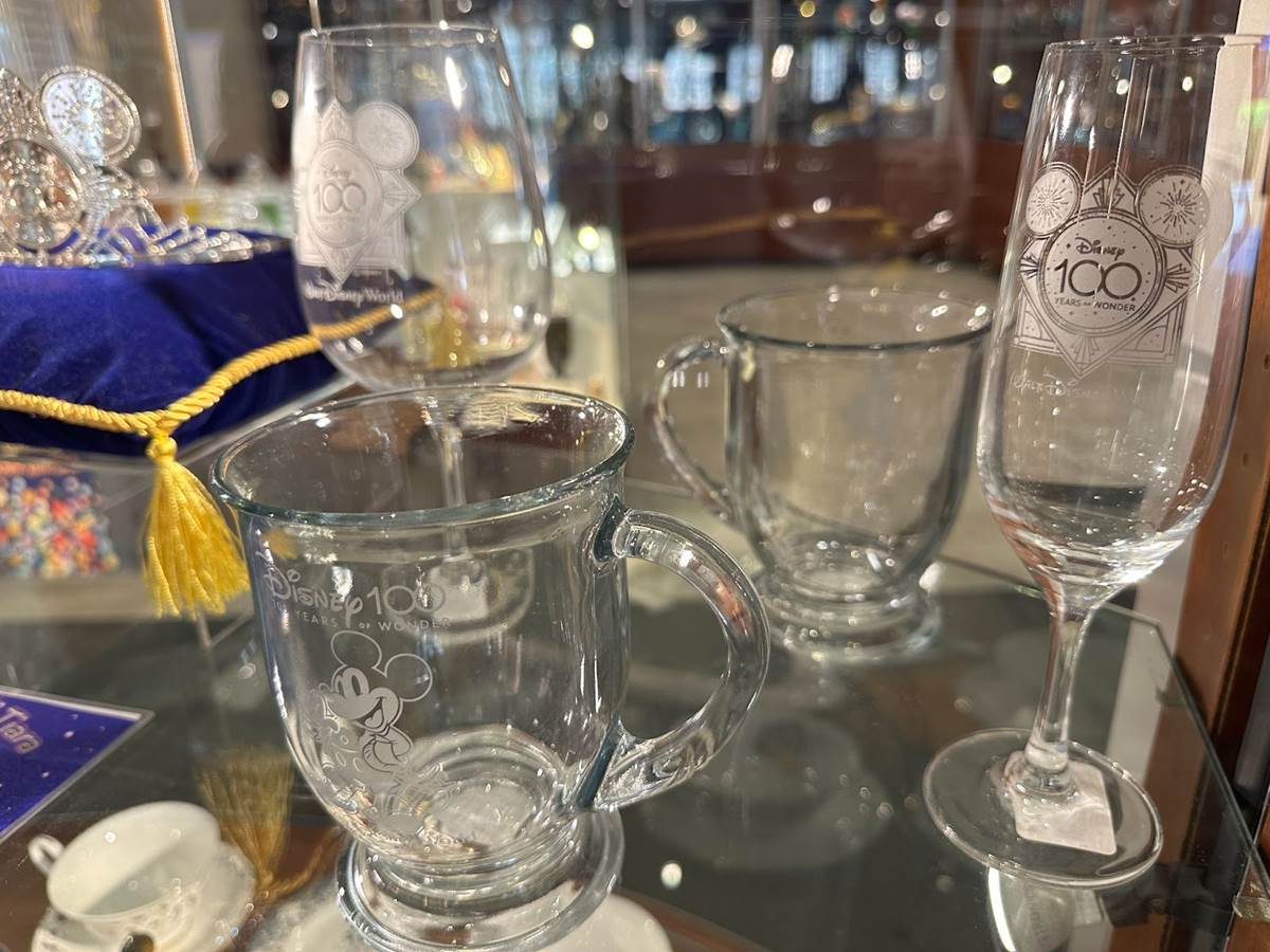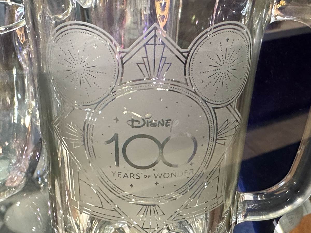 - A variety of glass drinkware is also available, with the Disney100 logo etched in each glass.