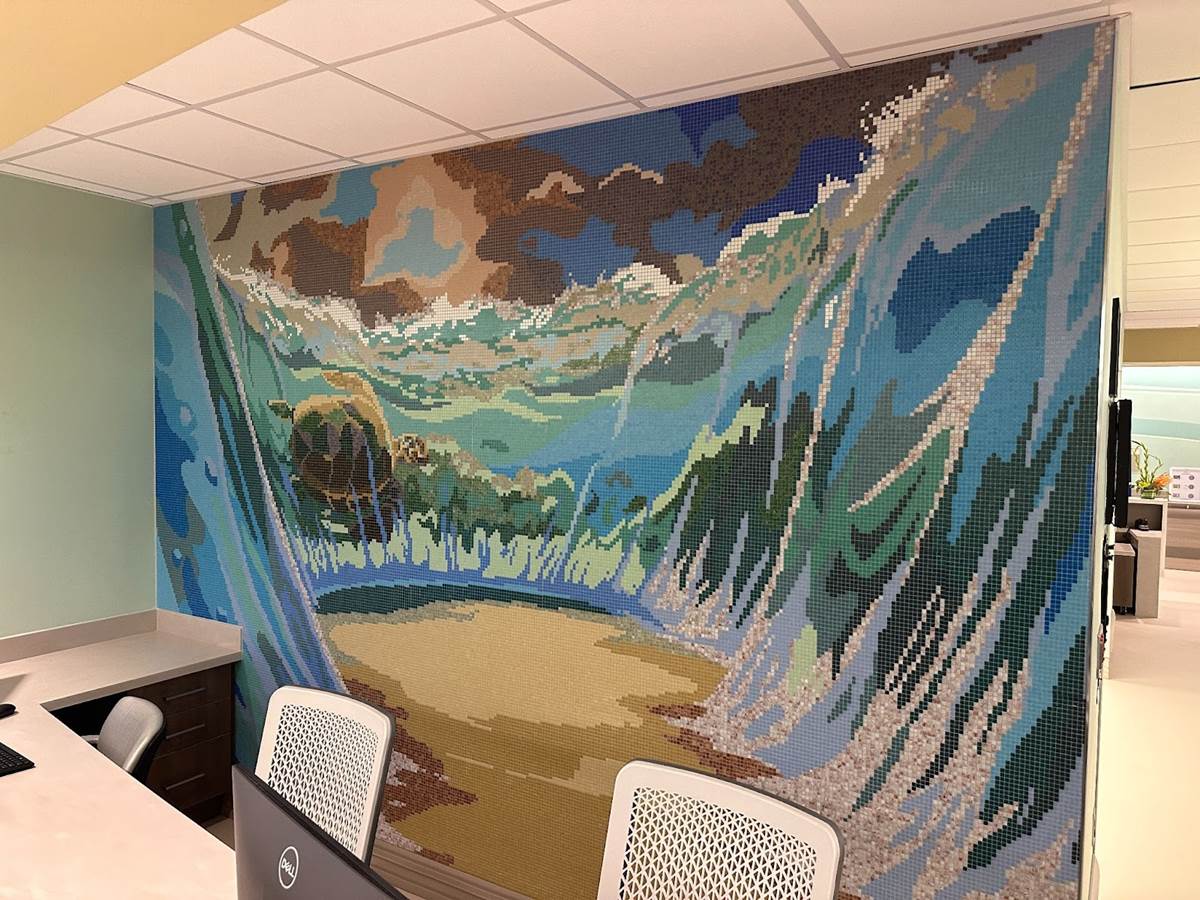 - The patients’ journey to whole-person care begins with a unified water-themed setting, with the use of color, sound and light to help patients feel at ease and feel whole.
