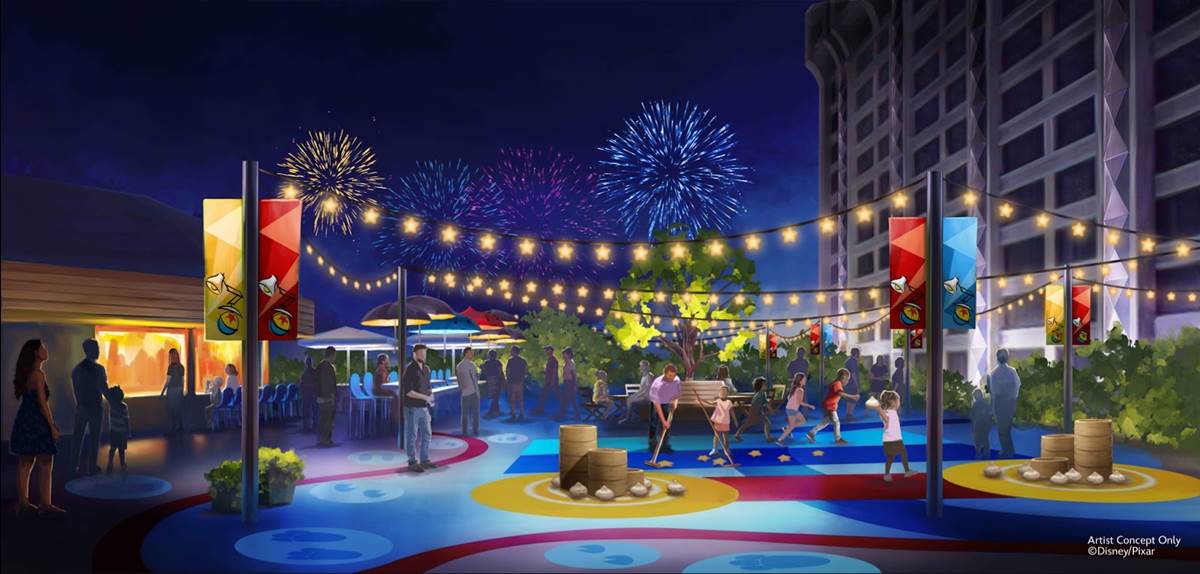 New Concept Art Reveals Remodeled Pixar Place Hotel Lobby, Pool Deck, and Great Maple Restaurant