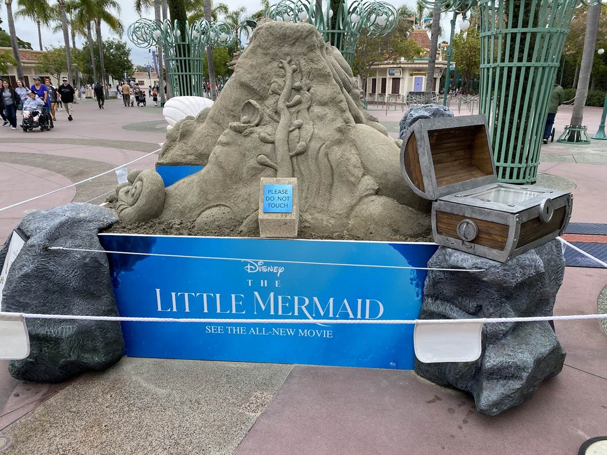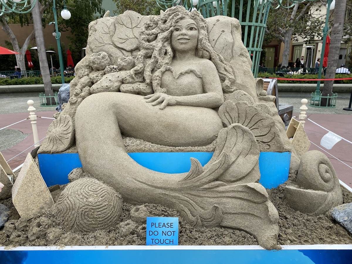 With the release of The Little Mermaid now in theaters everywhere, a new sand sculpture has appeared at the Disneyland Resort.