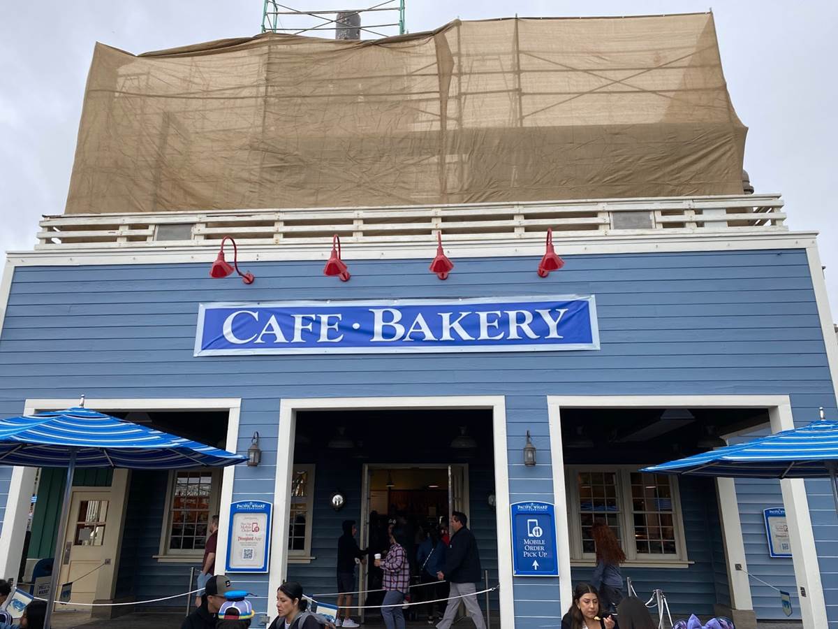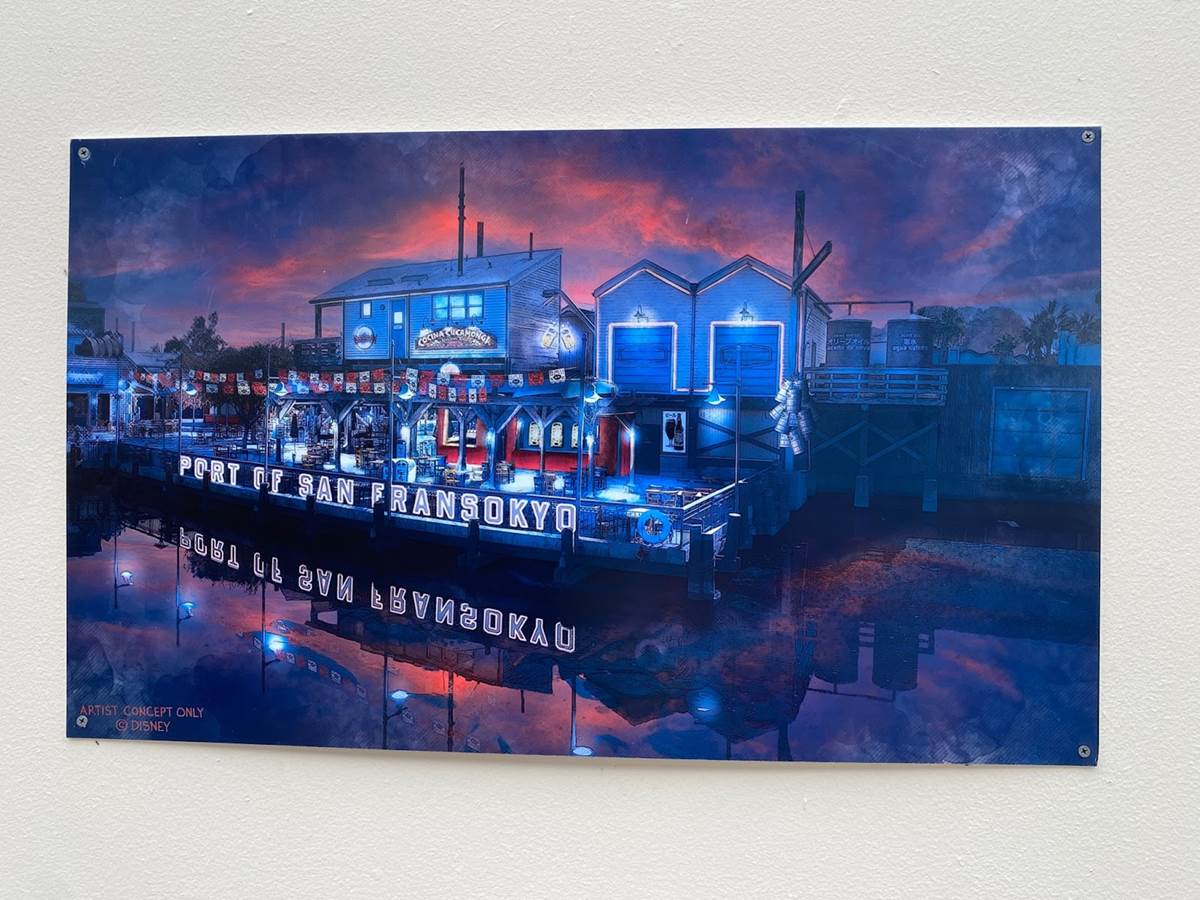 Plenty of new signage has been painted onto the buildings of the future San Fransokyo Square, inspired by the city featured in Big Hero 6. Most of the old Pacific Wharf establishments are sticking around, such as Cocina Cucamonga. Plenty of Big Hero 6 references have been worked in, such as the Baymax you can spot flying above the Wharfside Travel Agency sign.