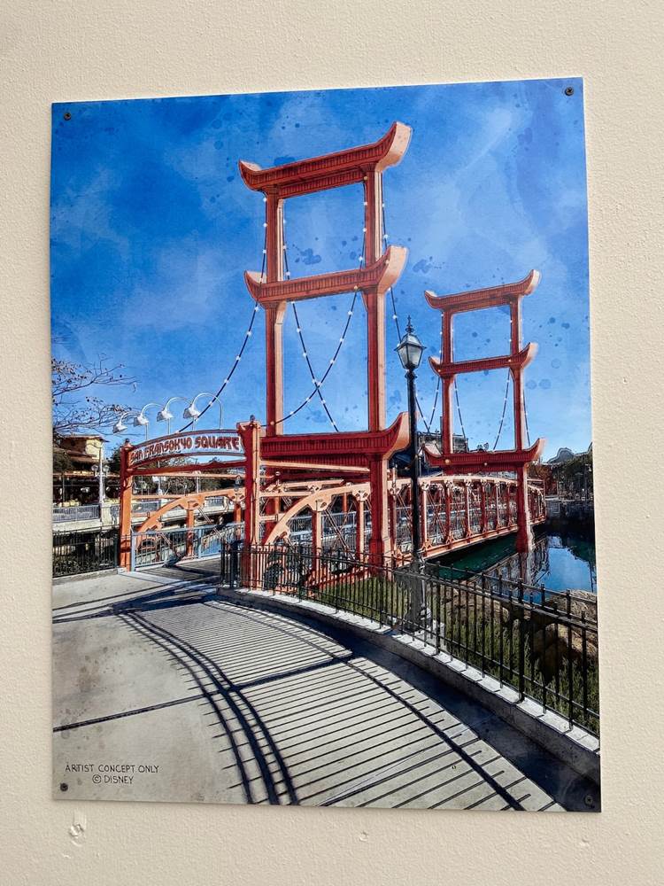 A beautiful new piece of art featuring the San Fransokyo Gate Bridge now adorns the building housing the area’s restrooms.
