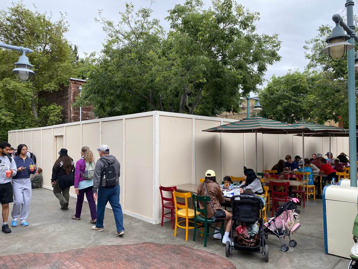 Construction on the reimagined San Fransokyo Square, which will replace Pacific Wharf at Disney California Adventure, is coming along, with new thematic details and signage being installed throughout the area.