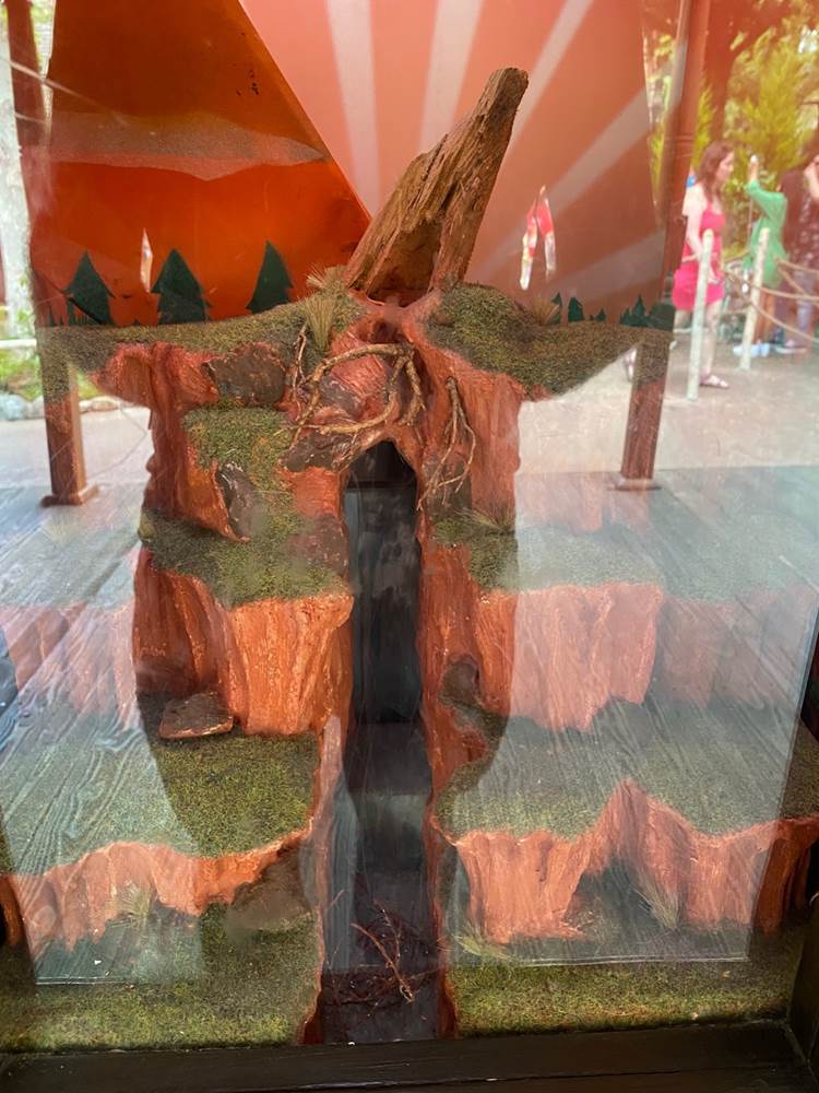 - The conductor talks about the bayou as you head through the future attraction’s show building, which has been blacked out so you can’t see the construction inside.