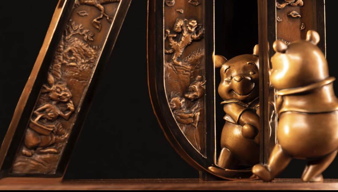 - There, a one-of-a-kind sculpture was presented to his family and features his favorite characters from Winnie the Pooh.