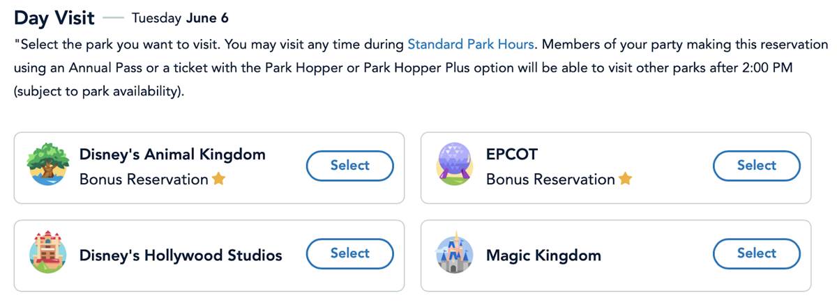 - Passholders with passes that are not blocked out on these dates may be able to make a bonus reservation (reservations that do not count towards the reservation holds for a pass type) to visit the Walt Disney World Resort theme parks, subject to reservation availability.