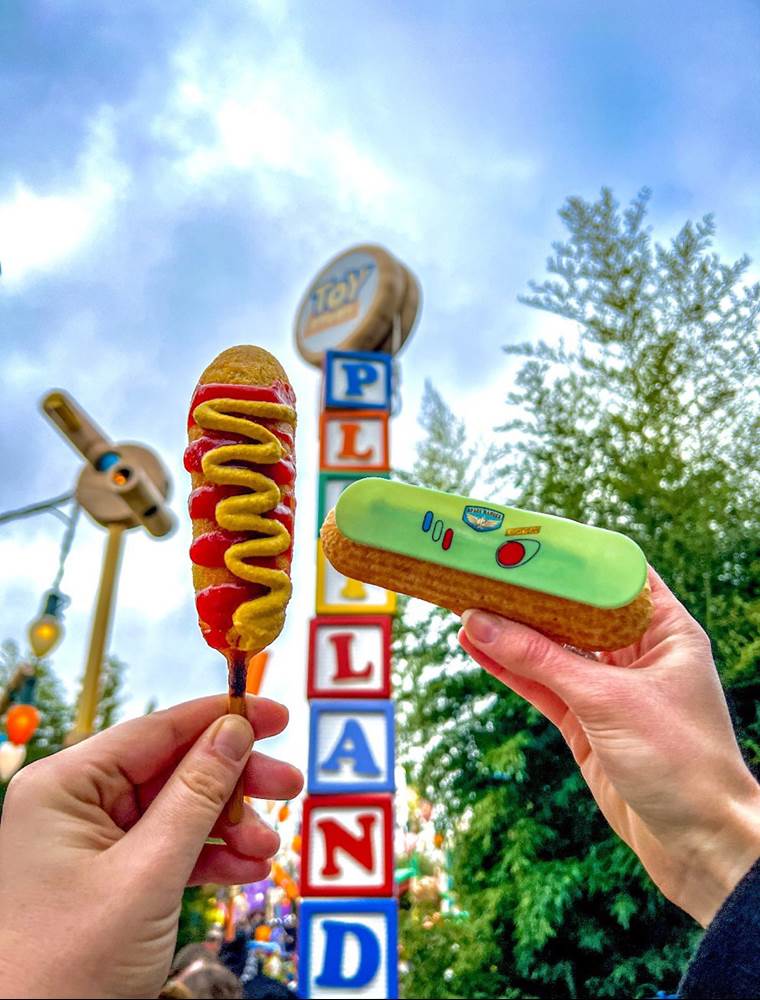 - Close to Buzz Lightyear’s statue in Toy Story Playland, a second food truck will offer a Slinky Corn Dog made with beef sausage and corn fritter dough, as well as an Infinity and Beyond Eclair with hazelnut cream, inspired by our favorite Space Ranger from Toy Story.