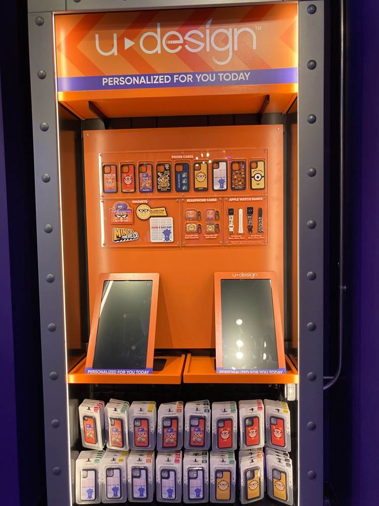A u-design booth allows guests to make their own custom Minion phone cases and other items while dozens of other fun details can be found throughout the store.