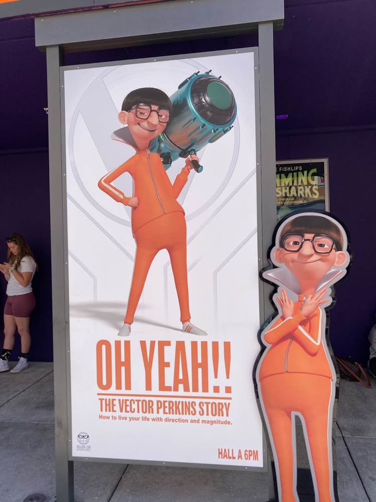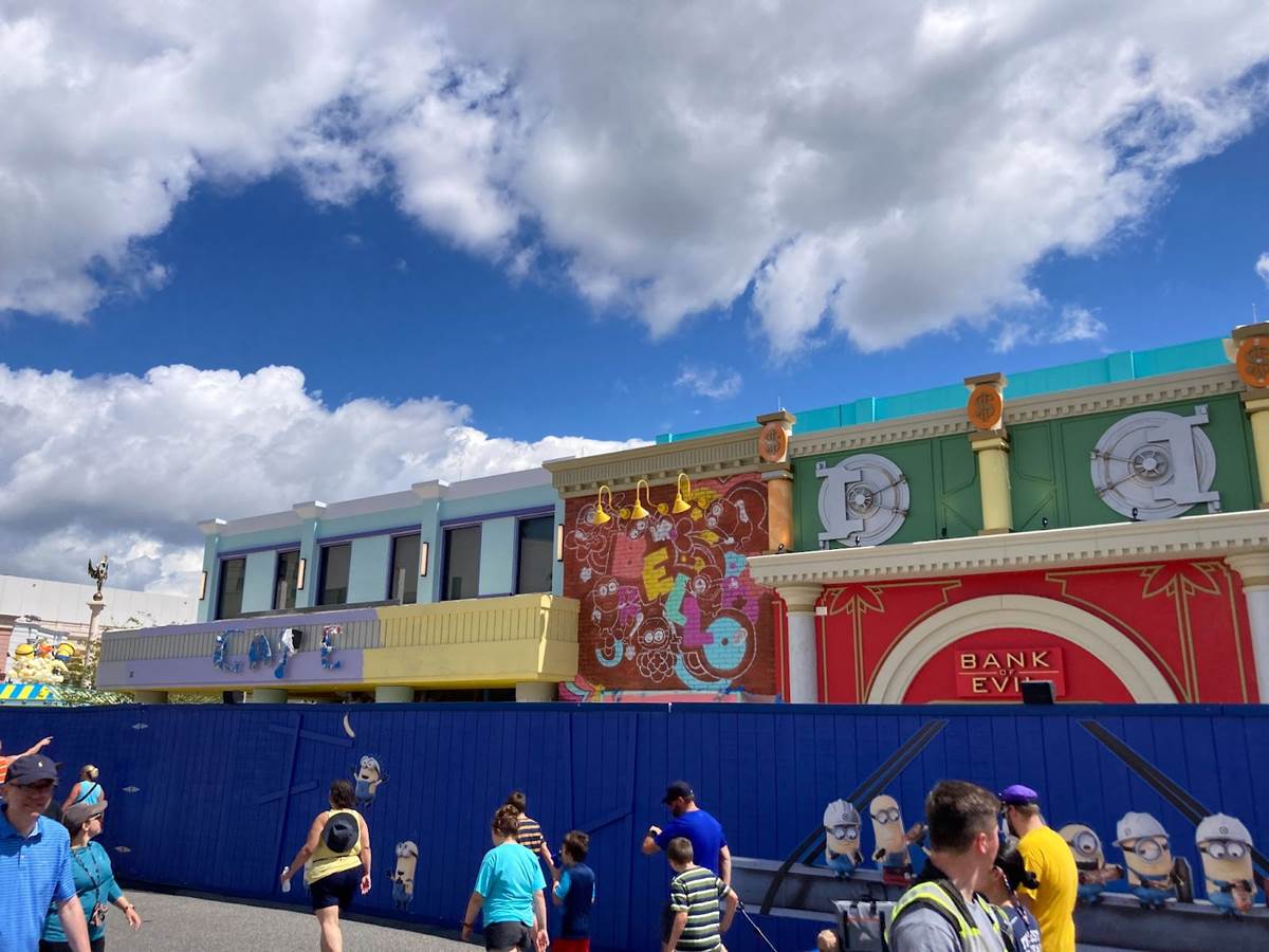 Aside from the new Evil Stuff shop, work continues on the rest of Minion Land. Construction walls have been most removed from the front of Illumination’s Villain-Con Minion Blast, revealing posters and cutouts for some members of the Vicious 6.