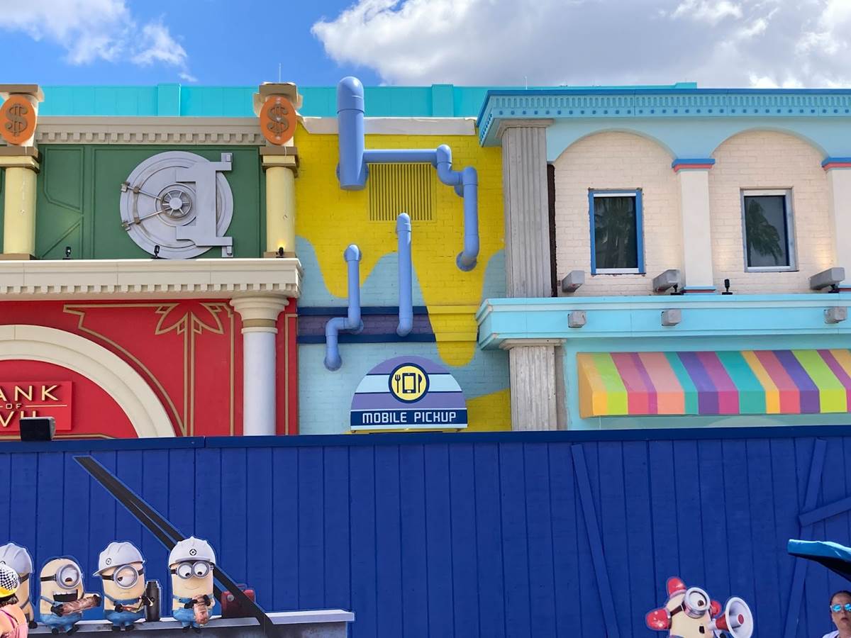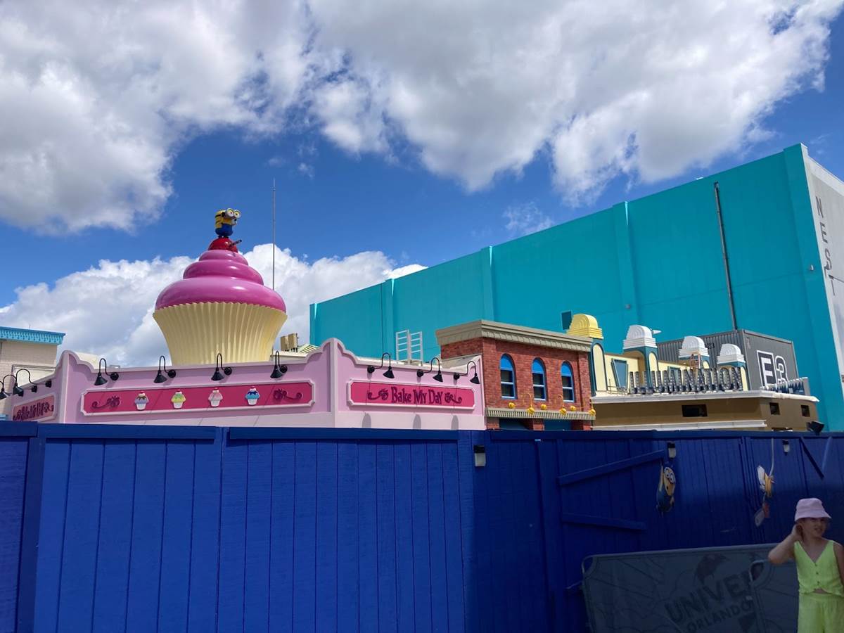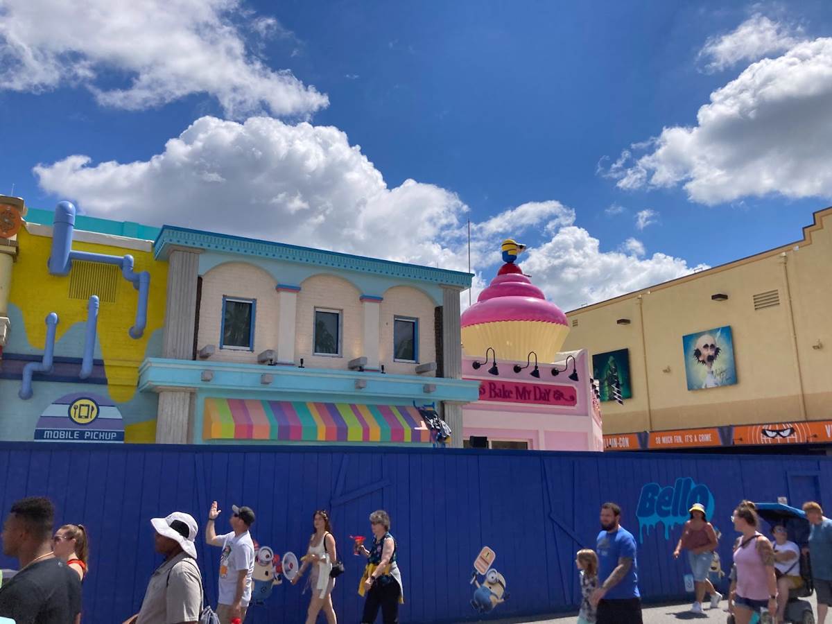 Just down the street, progress continues on the rest of Minion Land, including the Minion Cafe, Freeze Ray Pops and the Illumination Theater, which now has a new marquee.