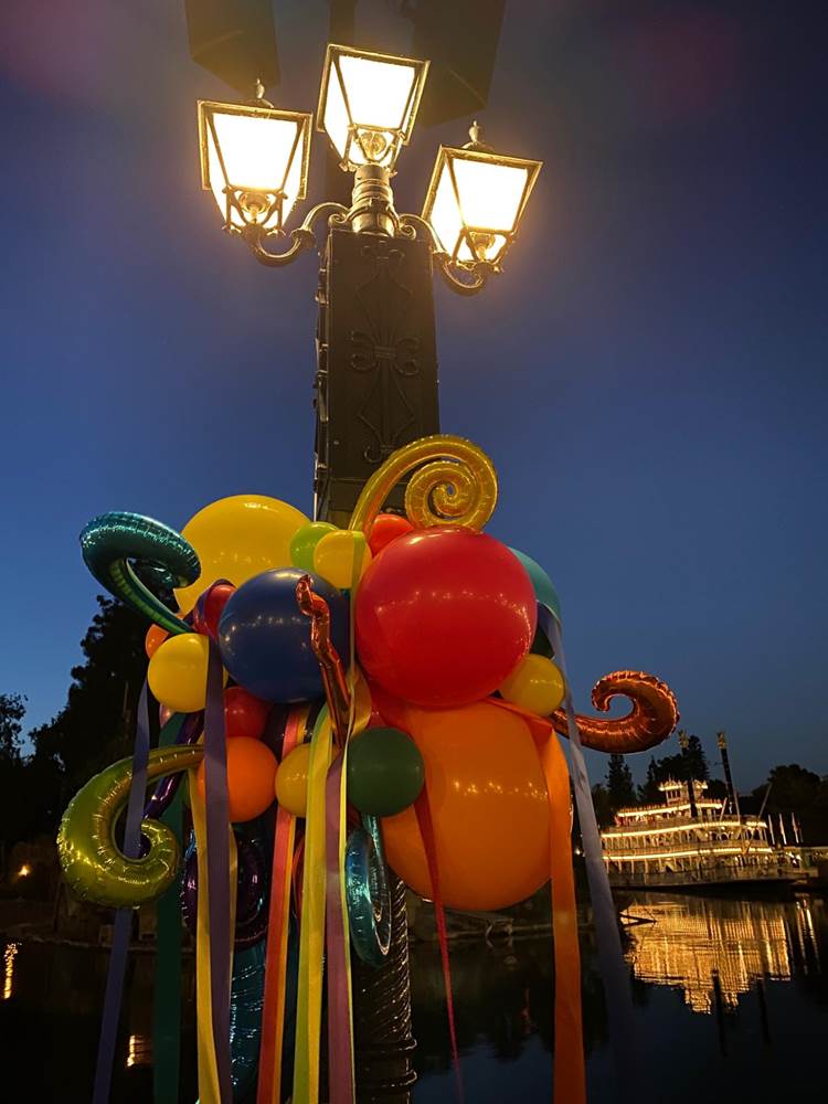 Rainbow colored balloons and bunting decorated the shores of the Rivers of America, which also served as home to a fun dance party along the water’s edge.