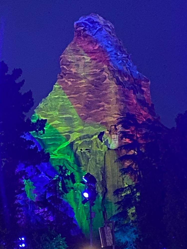 Admiring the rainbow projections on the Matterhorn as we wait for the 9:30 fireworks. #DisneylandAfterDark #PrideNite #Disneyland pic.twitter.com/AgSaFQJ2pb
