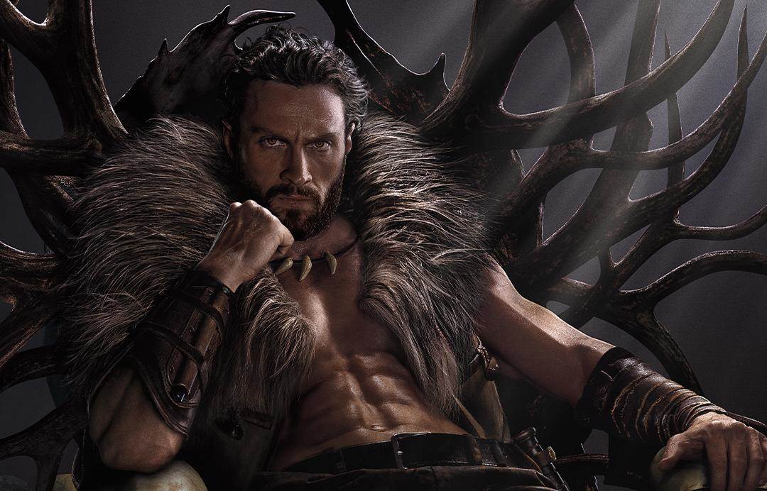 - This new poster gives us our first look at Aaron Taylor-Johnson as the titular Kraven.