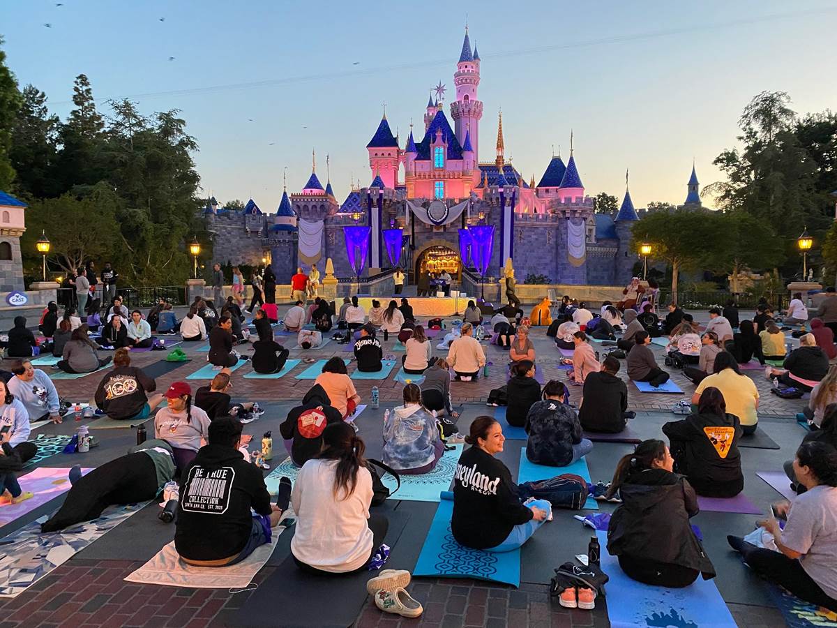 Disneyland Resort Cast Members were able to experience a special opportunity this morning as part of a now-annual wellness event - sunrise yoga in front of Sleeping Beauty Castle as part of International Yoga Day.