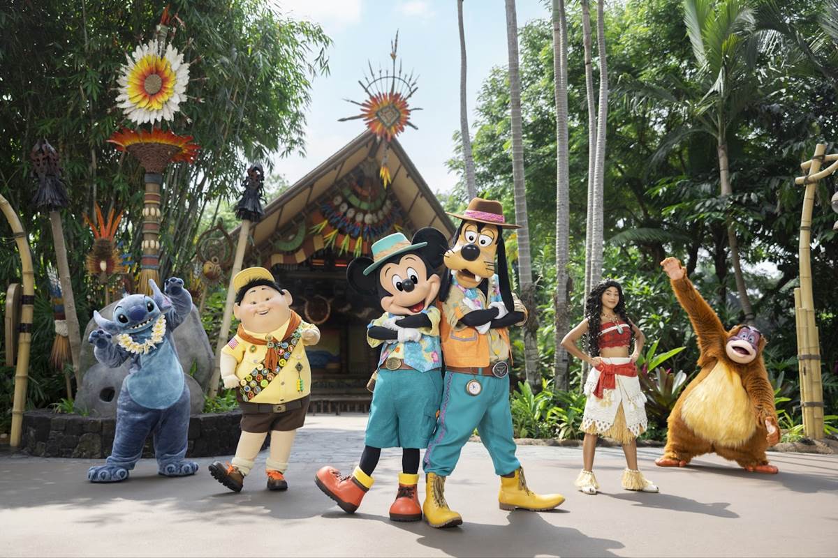- Be amazed by the all-new “Adventure is Out There!" stage show at Adventureland, featuring Mickey Mouse and Goofy in their brand-new stylish adventure-themed outfits, accompanied by Russell from Up, King Louie from The Jungle Book, Moana, and Stitch.