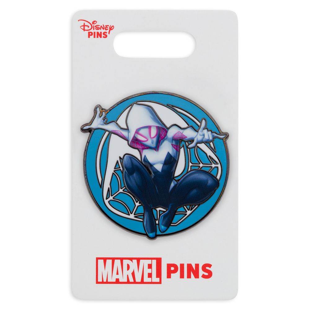 - Spider-Man and Ghost-Spider have swung in to join the party and each hero stars on their own pins. Both are in their heroic costumes and striking action poses in front of their popular logos.