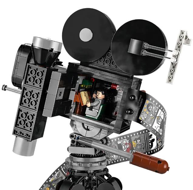 - This detailed collectible set features a vintage-style movie ‘camera’ with a hinged back panel with a surprise and a film strip showing stills from 20 historic Disney movies, a director’s clapperboard with space for the 3 LEGO minifigures, 2 LEGO animal figures and a multiplane camera with 3 printed screens showing how Disney’s The Old Mill short was made.