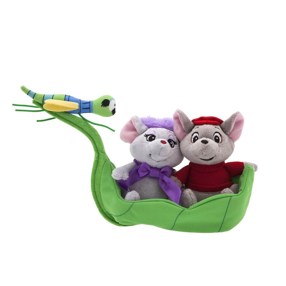 “Sound the alert for Rescue Aid Society agents Miss Bianca and Bernard, as someone (perhaps you?) has stolen another hug from this pair of curiously soft and delightful plush mice of Disney's classic, The Rescuers. Included with our intrepid mice investigators is dragonfly Evinrude who serves as the outboard ''motor'' for a ''leaf'' boat."