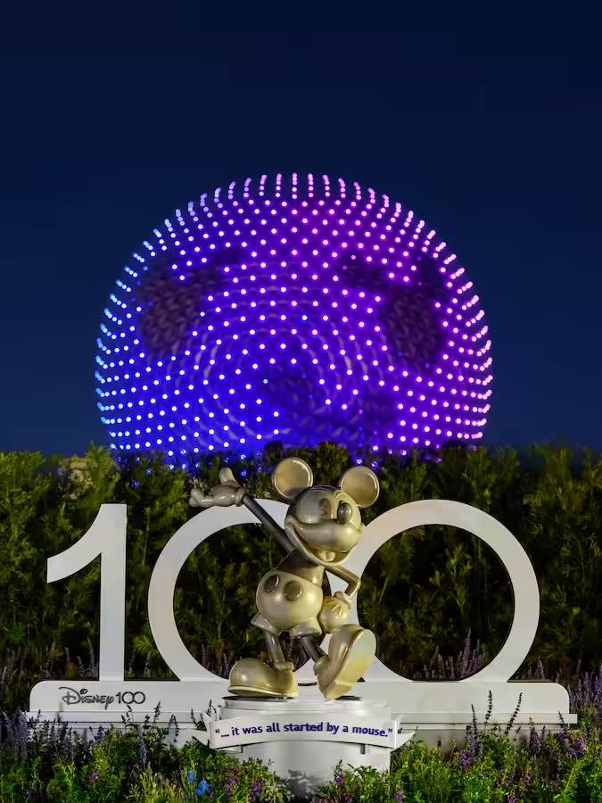 - Visiting guests will be able to snap a photo with a new platinum Mickey Mouse sculpture in World Celebration with Spaceship Earth in the background, in addition to the Disney100 Magic Shots and PhotoPass offerings currently available across Walt Disney World.