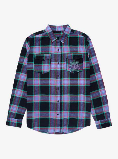 Madame Leota gets the chance to star in her very own BoxLunch exclusive flannel shirt that features purple, black and green plaid pattern. The back has her name and disembodied head floating in its classic crystal ball.