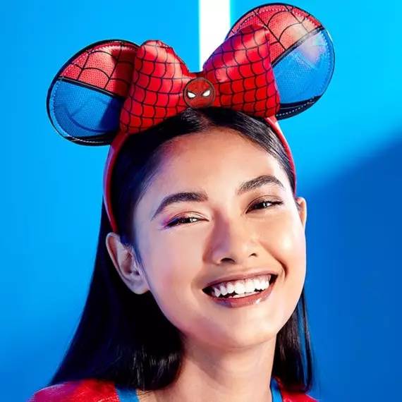 - A new ear headband inspired by Peter Parker’s alter ego, Spidey, features his iconic red and blue hero suit that’s covered with webbing.