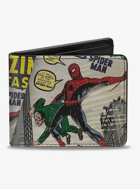 Fans can accessorize with Spider-Man wallets like this ultra cool chain wallet or the super retro Amazing Fantasy comic bi-fold design featuring the hero saving the day.