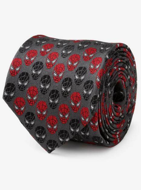 If you’d rather not be loud about your fandom you can take the (slightly) subtle approach with the pink, black, and white Ghost-Spider socks or opt of a chevron necktie made up of small Spider-Man masks.