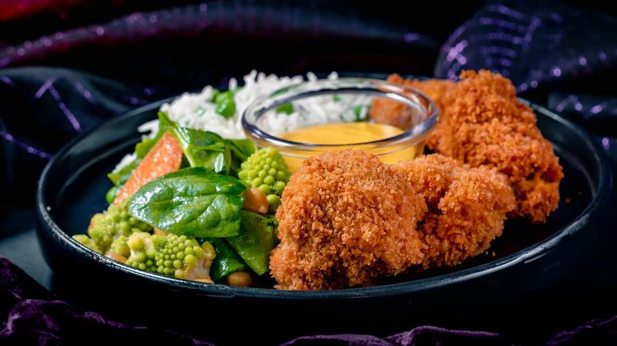 - Starting September 1st, if you have reserved a spot at Tomorrowland Skyline Terrace during the Halloween season, this plant-based item is fit for royalty. It serves up spiced fried cauliflower, basmati and green pea rice, spinach with chickpeas and Romanesco served with curry sauce. Be sure to take a peek at the rest of the Halloween goodies at Disneyland Resort in this year’s Foodie Guide.