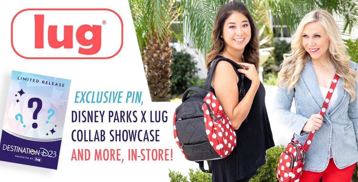 - Lug is so excited to meet all of their fellow Disney fans attending Destination D23! They are a Walt Disney World-local family brand and this year’s presenting sponsor… and they want to help you live your best Lug life, which will start the moment you check in and pick up your Destination D23 event bag (complete with some surprises from them).