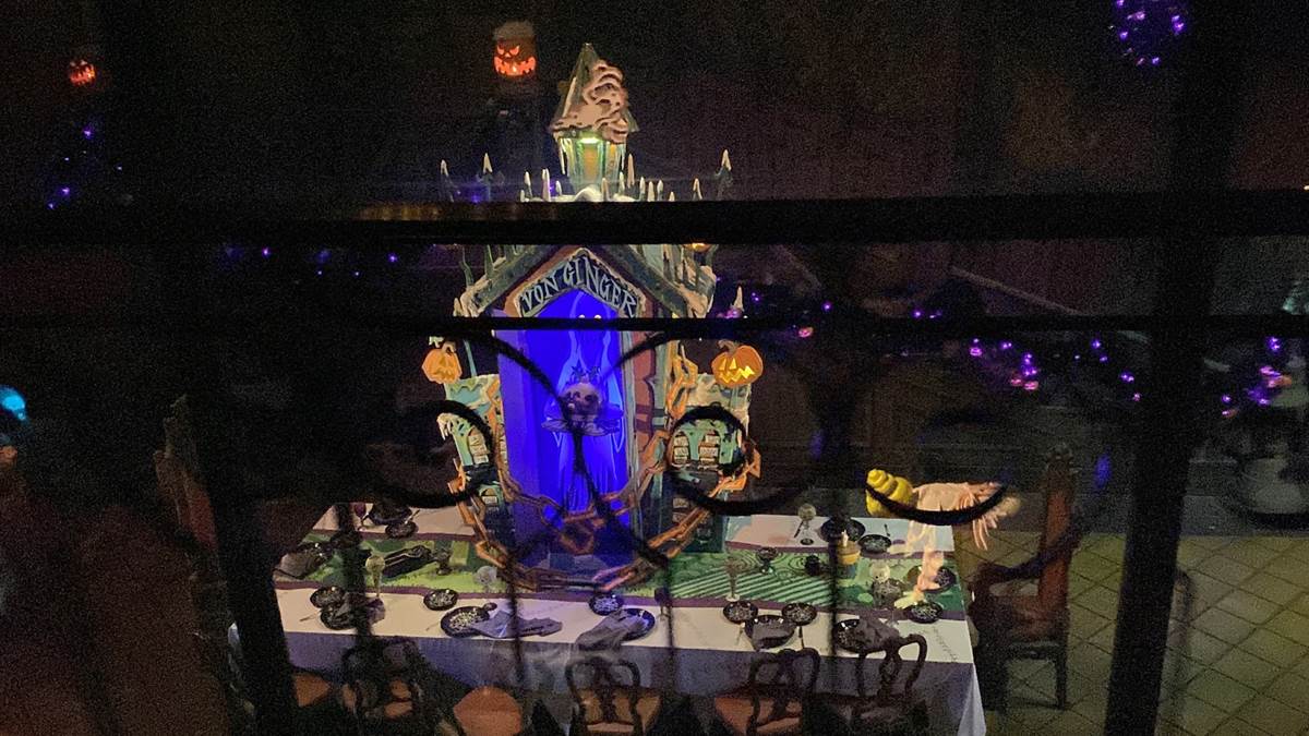 On the inside, there are no noticeable differences this year, aside from of course the always popular gingerbread house. This year, it’s Von Ginger’s time to shine, as he pops out of the mausoleum to share a fruitcake with you!