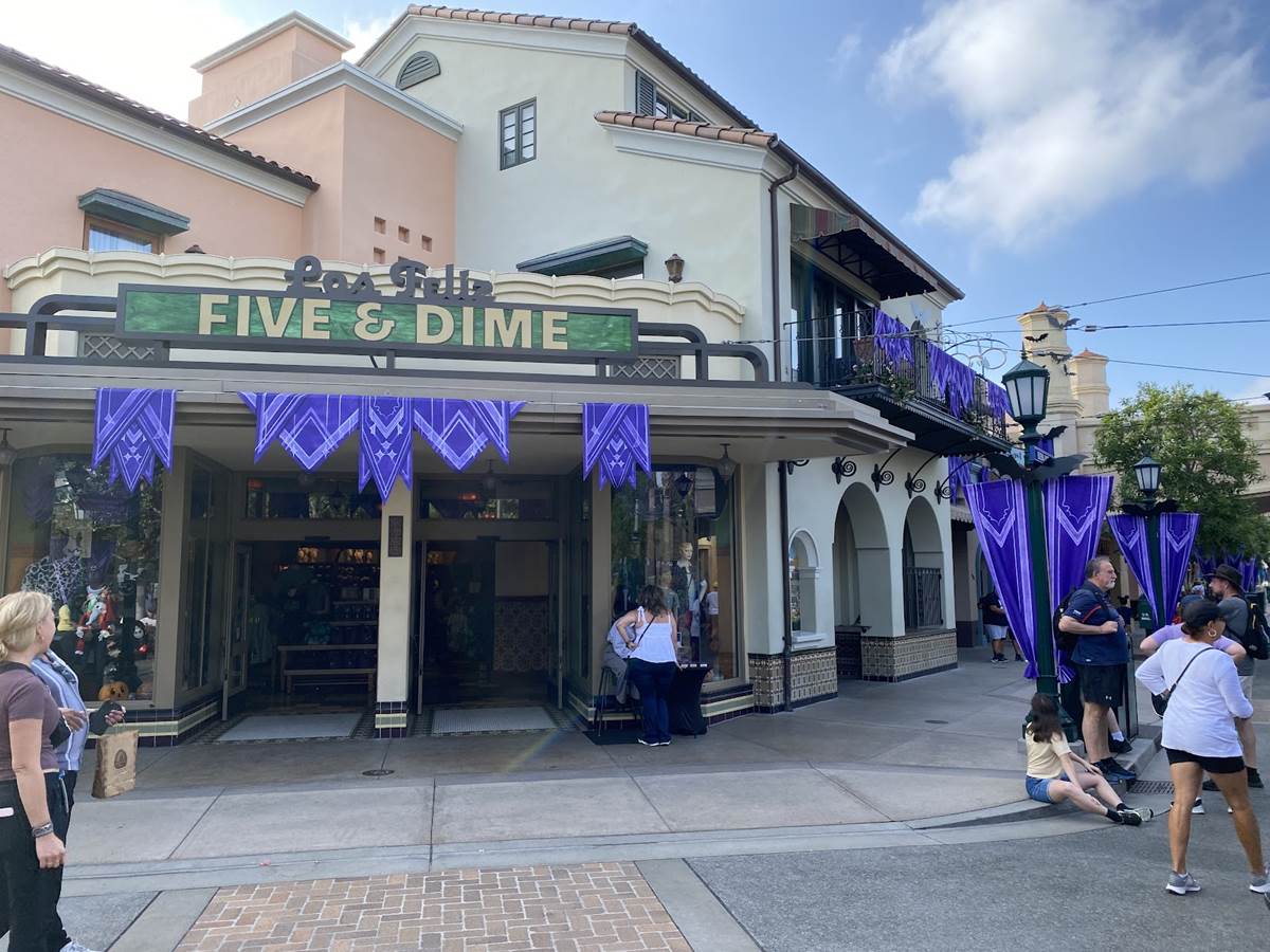 The fun banners featuring bats have returned, as has the giant Oogie Boogie Silhouette above the entrance of Disney California Adventure. Once inside the gates, guests will find the classic purple and bats aesthetic that they have come to love on Buena Vista Street in recent years.