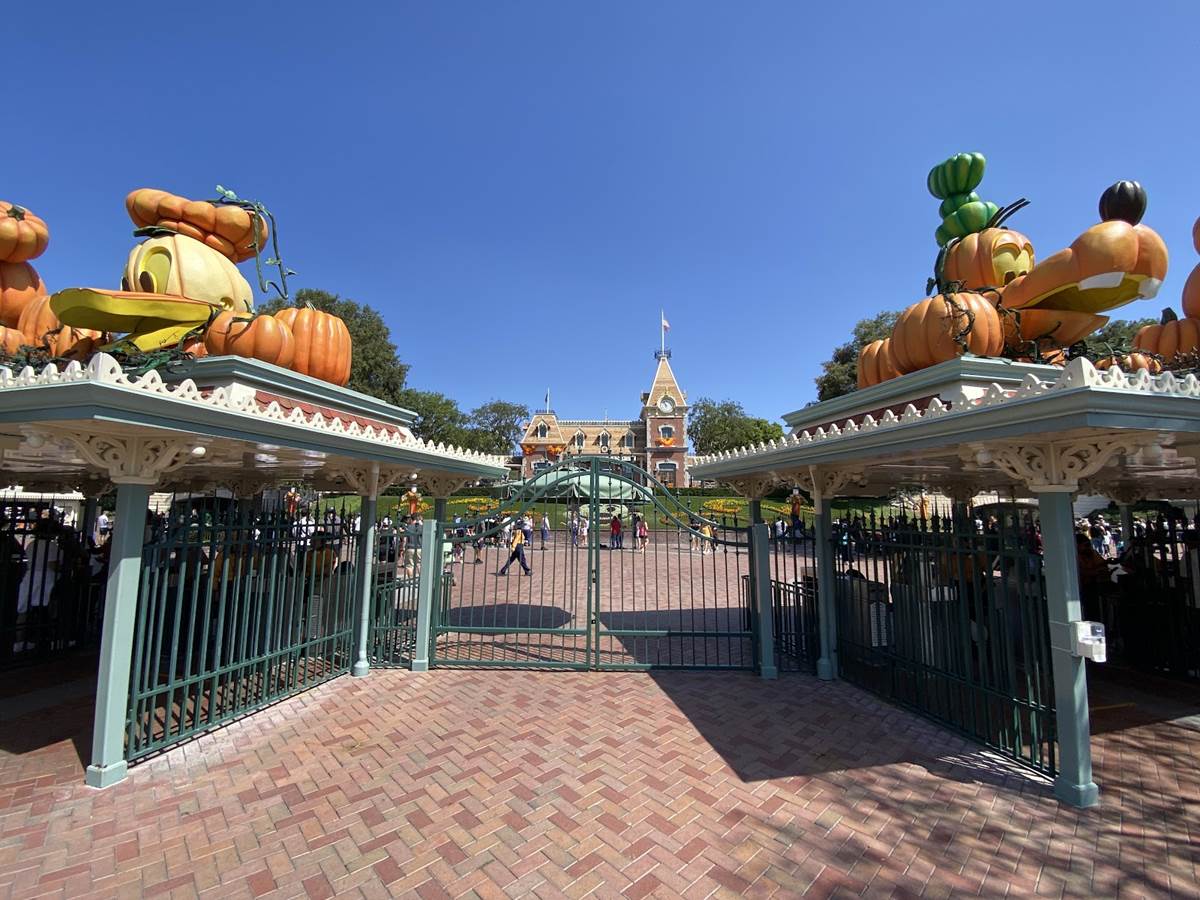 Across the Esplanade, Disneyland has decked out the park in the usual pumpkin decor, which starts at the turnstiles to the park.