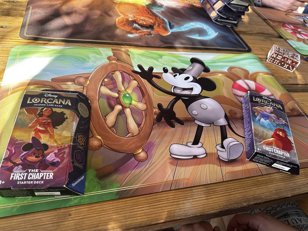 However, it was the tables set up for Disney Lorcana, a new fantastical and collectible trading card game that seemed to garner the most attention. The game transports two or more players to the magical realm of Lorcana. Here, players become “Illumineers" and wield magic ink to summon a team of Disney characters known as “glimmers," who appear in both familiar and reimagined forms. In Disney Lorcana, players embark on a search for lost lore with their teams of glimmers. They’ll play characters, actions, and items from their hand and choose whether to “quest" for lore with their glimmers or challenge their opponents. The first player to collect 20 lore wins.