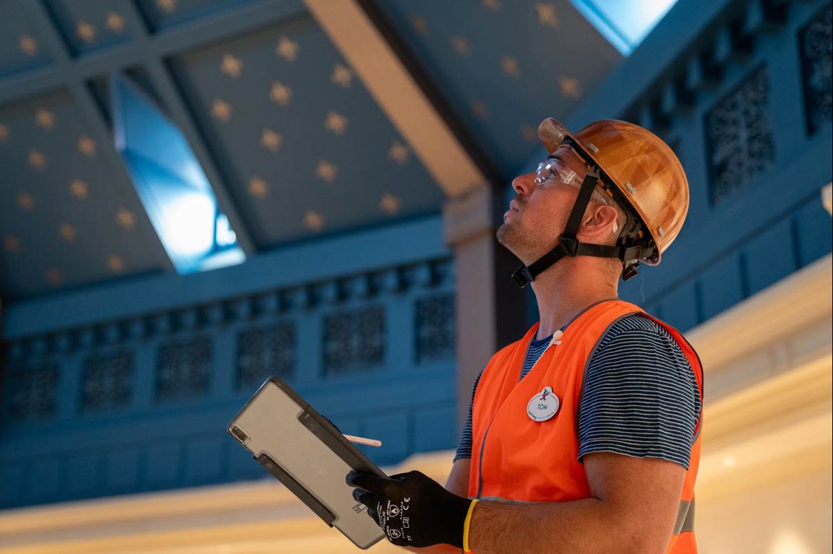 - Thomas Muller, set designer for Walt Disney Imagineering, showed off the inside of the reimagined hotel for the first time, taking us to the construction site of what will become the ultimate royal Disney address, through the majestic lobby, and the elegant Rotunda.