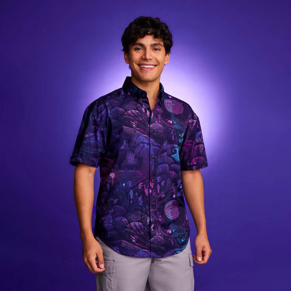 - Fans of Jack Skellington will love the (mostly) black and white “Bone Daddy" button down that focuses on the Pumpkin King in all his spooky glory. Look closely in the background sketches and you’ll spot Sally, Lock, Shock, and Barrel, Oogie Boogie and so many others.
