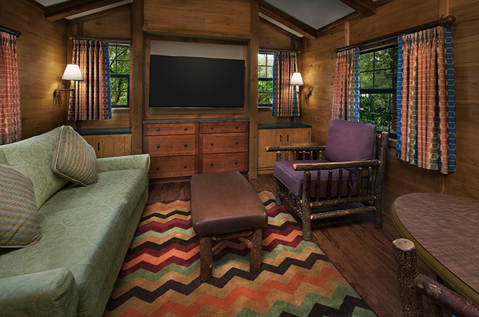 Resort Features: Disney's Fort Wilderness features plenty of recreation activities, including horseback riding, carriage rides, archery, Bay Lake recreation (boat/canoe rental, fishing), bike rentals, two pools, plus Chip & Dale's Campfire Sing-Along and Movies Under the Stars. There are two restaurants, plus the Hoop-Dee-Doo dinner show and seasonal Mickey's Backyard Barbeque.   Standard room amenities: Alarm clock, AC/heat, patio, charcoal grill, coffee maker & setup, DVD player, one-car driveway, hair dryer, in-room safe, iron and ironing board, crib: pack 'n play, telephone with no surcharge (charges for long-distance will apply), television, washer/dryer (1-3 bedrooms only), vanity area, voice mail, Wi-Fi wireless internet