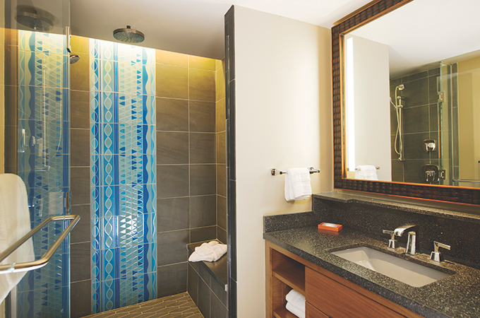 Reminiscent of the South Pacific, the Bora Bora Bungalows at Disney's Polynesian Villas & Bungalows showcase a modern tropical style, sleep up to eight guests in a two-bedroom, home-like setting and feature a plunge pool on a private deck where guests can enjoy views of fireworks over Magic Kingdom. The Bungalows also have two full bathrooms, a kitchen, washer and dryer, and dining and living room spaces for gatherings. The newest Disney Vacation Club Resort, Disney’s Polynesian Villas & Bungalows features 20 Bungalows on Seven Seas Lagoon, the first of this type of accommodation for Disney, and when complete this summer, 360 Deluxe Studios at the Walt Disney World Resort in Lake Buena Vista, Fla. The expansion is part of an overall re-imagination of Disney's Polynesian Village Resort. (Matt Stroshane, photographer)