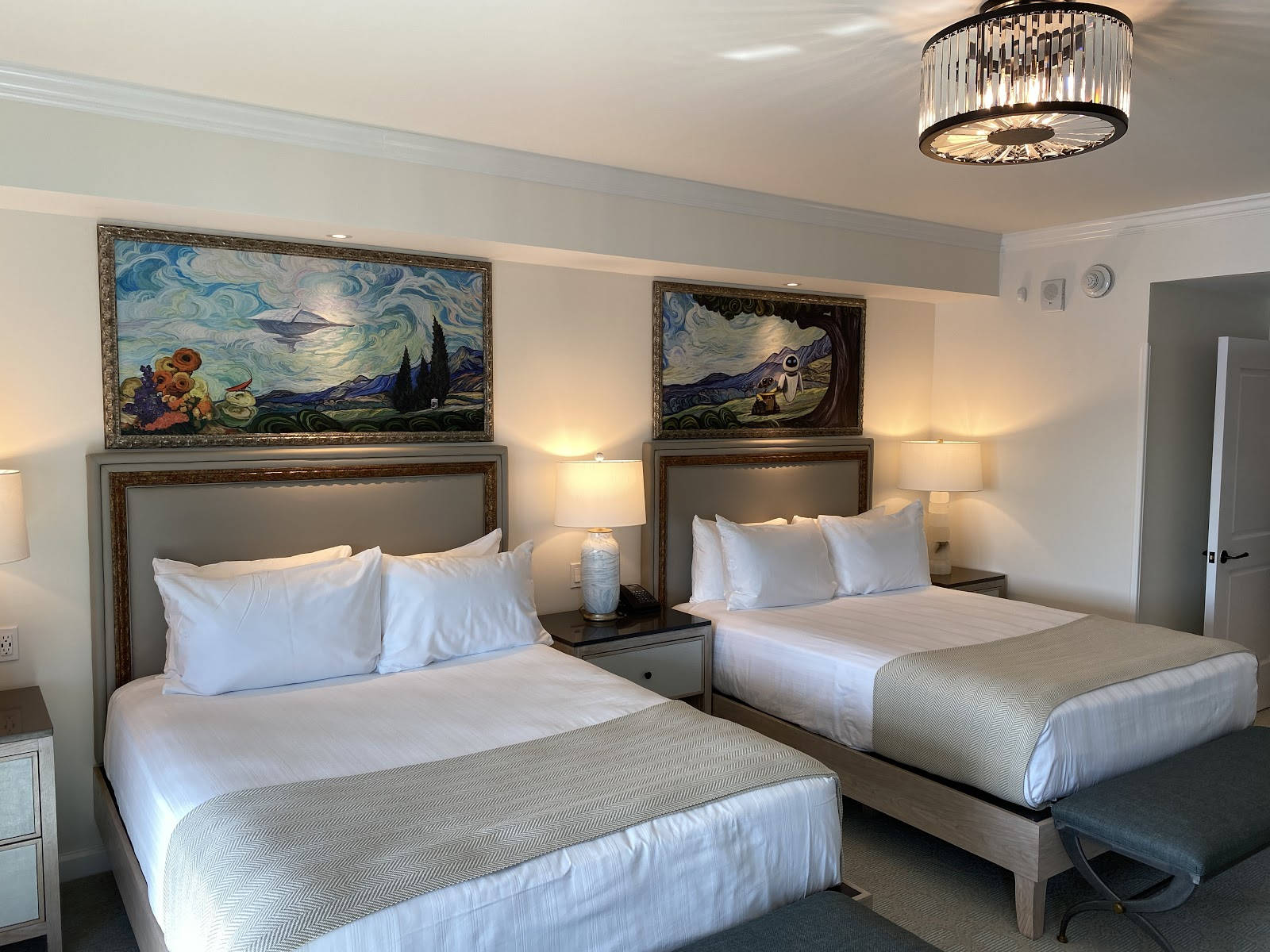 Resort Features: Guests of the Riviera Resort have direct access to Dinsey's newest transportation—the Disney Skyliner! The resort is home to the elegant rooftop restaurant Topolino's Terrace whose name comes from Mickey Mouse's Italian title. Guests will enjoy beautiful 360° views of the resort from this signature dining location that offers character breakfasts and exquisite dinners.   Standard room amenities: Private porch or balcony Coffee maker, Iron and ironing board, Flat-panel TV(s), Microwave, Wi-Fi wireless internet, Hairdryer (except tower studios), Villas feature, Full kitchen, Stacked washer and dryer