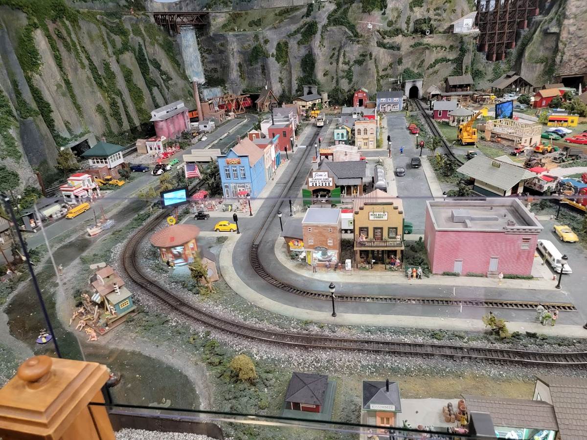 Throughout our abbreviated tour we strolled through the Village’s Avenue of the Angels and learned more about the history behind some of their signature locations including Castle of Miracles, Henri’s Starlite Scoops (including its connection to astronaut Buzz Aldrin?), and were able to see a few of the Village’s villas covered in twinkling lights. We also passed their tree trail and made a brief stop at the Amberville Train station’s impressive and enormous interactive train model pushing the buttons that bring it to life.